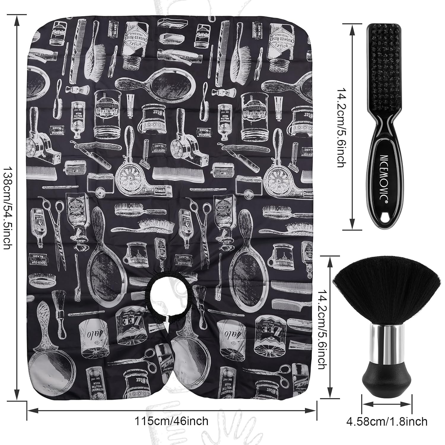 NICEMOVIC Hair Cutting Barber Cape with Neck Duster Brush and Barber Brush, Professional Barber Accessories Cleaning Supplies for Salon Haircut Styling