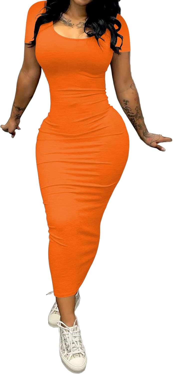 Summer Scoop Neck Short Sleeve Long Fitted Dresses Club Party