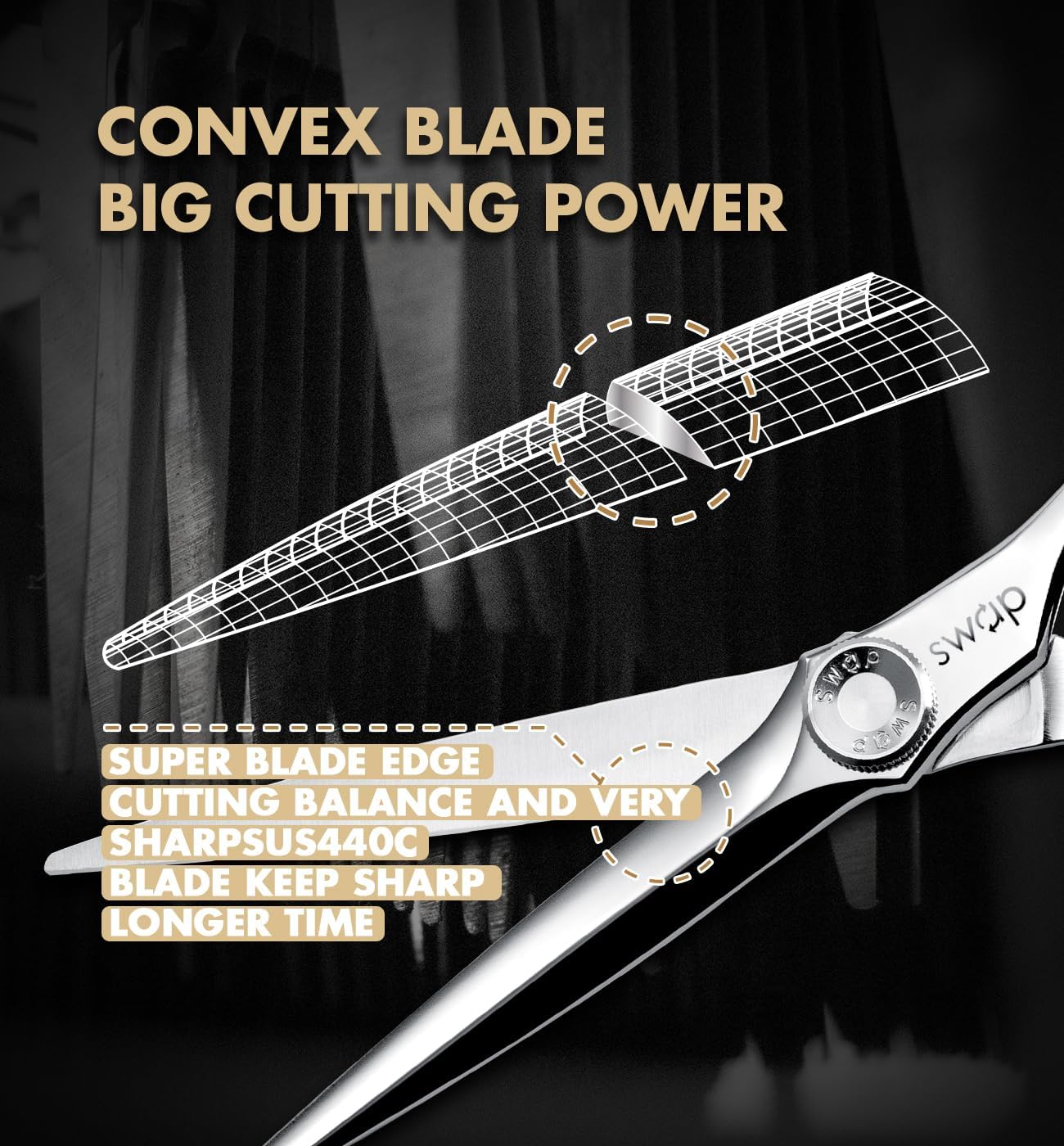 SWAP Professional Hair Cutting Scissors – SUS 440C & Cobalt Stainless Steel Barber Shears, 6 ” Profesional Cutting Shears for Hair Cutting, Fine Adjustment Tension, Premium Shears for Hair Cutting