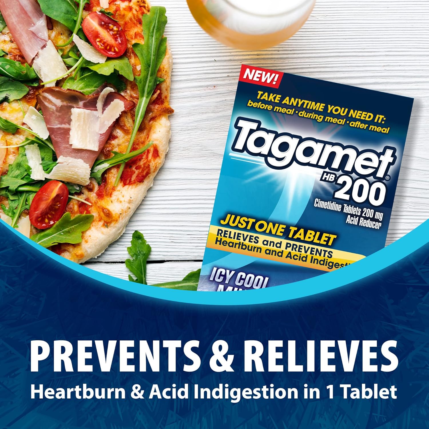 Day or night, Tagamet Icy Cool Mint provides complete* heartburn relief in just one tablet. It also provides a soothing, cooling sensation that can be felt instantly in your mouth and throat. Tagamet Icy Cool Mint provides rapid heartburn and indigestion relief caused by eating or drinking certain foods and beverages, such as hot and spicy foods. To prevent heartburn symptoms, take Tagamet before your first bite or any time up to 30 minutes before eating food or drinking beverages that may cause heartburn. To relieve heartburn symptoms associated with acid indigestion and sour stomach, take one Tagamet tablet at the first signs of discomfort, whether during or after a meal. Manage your heartburn with Tagamet. It’s the first Rx heartburn prevention product and has been trusted for 40 years** *Works before, during and after meals. **Based on Tagamet consumer purchase since 1977.