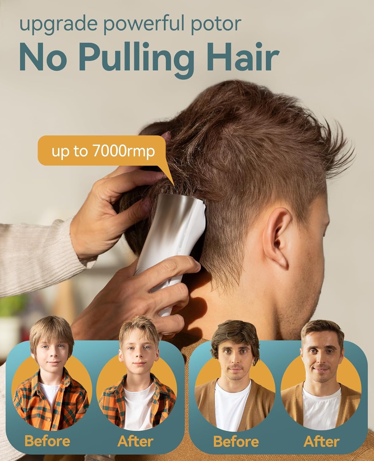 Precise Cutting & No Pulling Hair:The vacuum clippers for men have upgrade powerful motor in 7000rmp that ensures snag-free and no pulling haircuts, giving you a comfortable and efficient haircutting, beard trimming and pet’s grooming