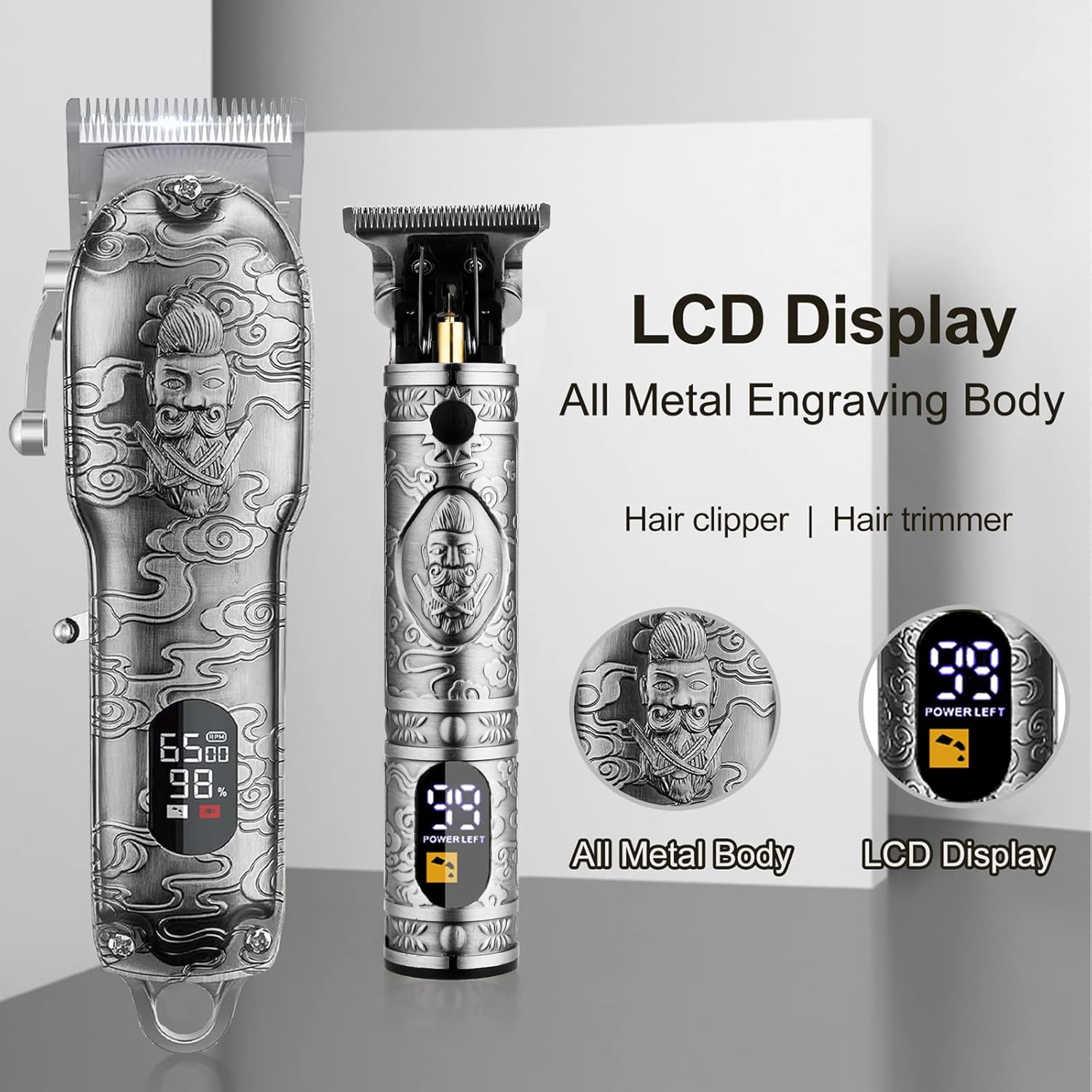 Smart Digital Display and Long Battery Life: The men hair clippers have a built in LCD Display that indicates when your hair clippers need to be oiled or charged. offers up to 240 minutes of running time with charging 2.5 hours for the hair clipper. 120 minutes of running time with charging 1.5 hours for the detailed trimmer