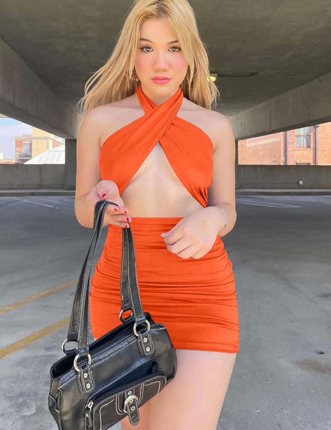 Mokoru Women’s Sexy Halter Criss Cross Backless Mini Club Party Dresses