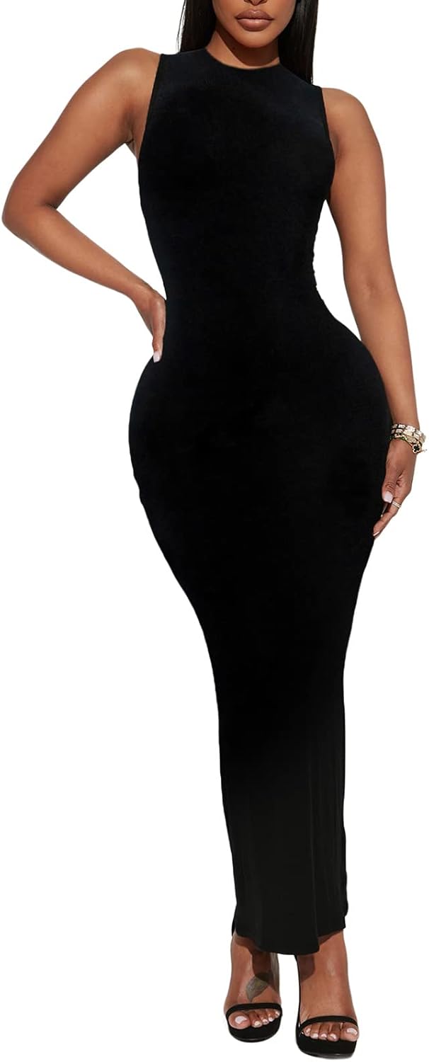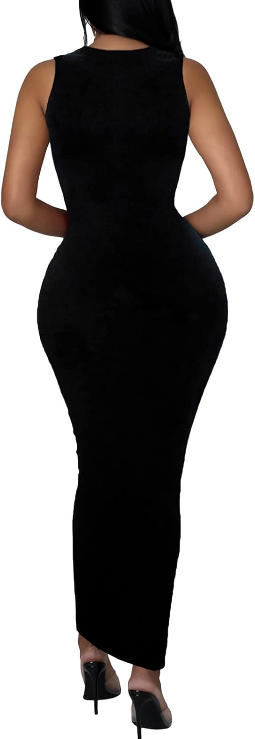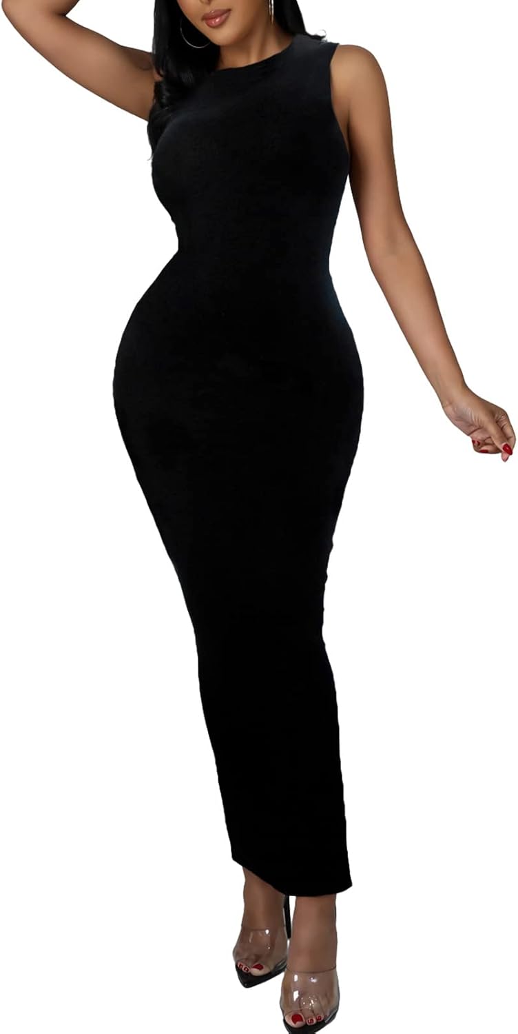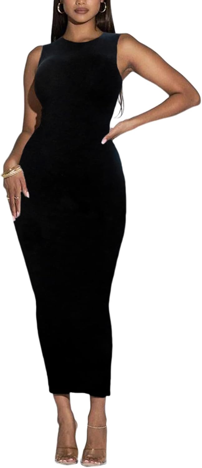 Maxi Summer Casual Bodycon Long Dress for Women, Homecoming Club Dinner Going Out Tight Dresses, Basic Sleeveless Pencil Tank Dress