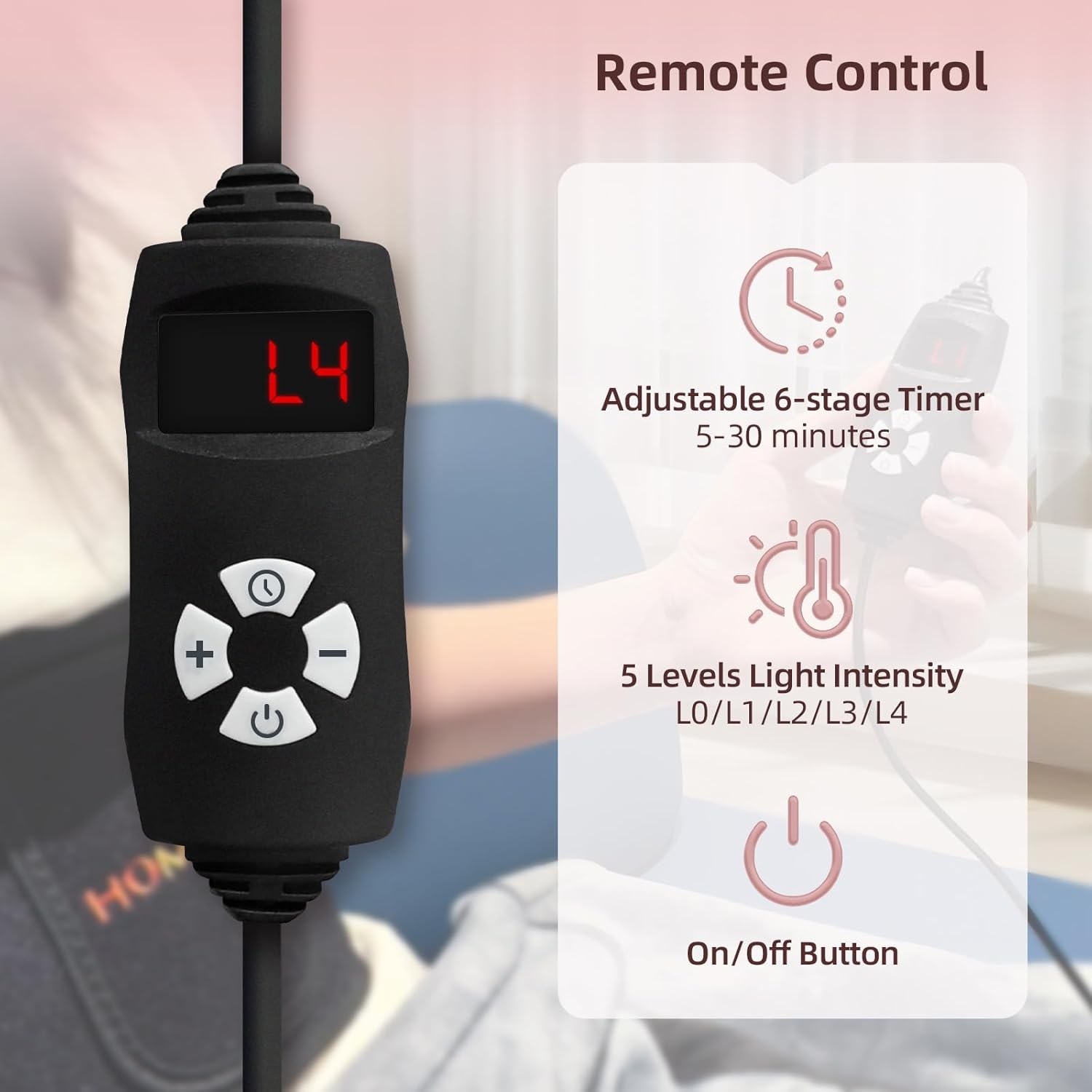 Custom Therapy – The versatile infrared red light therapy belt offers dual light therapy with both 660nm red light and 850nm near-infrared light, each recognized for their unique therapeutic effects. For a personalized therapy experience, the red light therapy wrap features an easy-to-use brightness adjustment with “+” and “-” buttons, offering five distinct levels (L0, L1, L2, L3, L4) that allow users to tailor the light intensity to their preferences or the specific requirements of their therapy session.