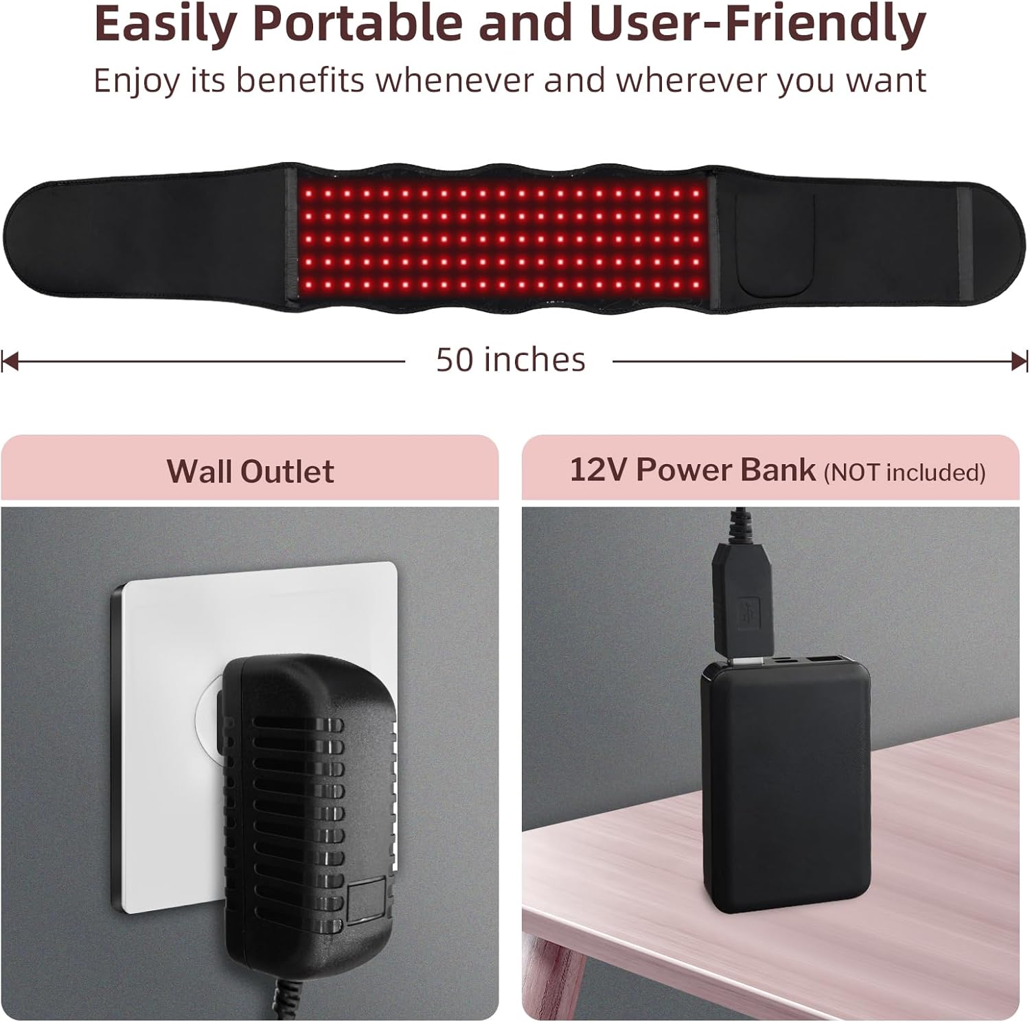 Power Flexibility – The infrared belt offers flexible power options, being compatible with both power banks and wall outlets. The red light therapy belt for body’s compact design ensures the belt is easy to transport and use in various settings, such as home, office, or while traveling. This portability makes light therapy benefits accessible anytime, anywhere, without the need for a dedicated treatment room.