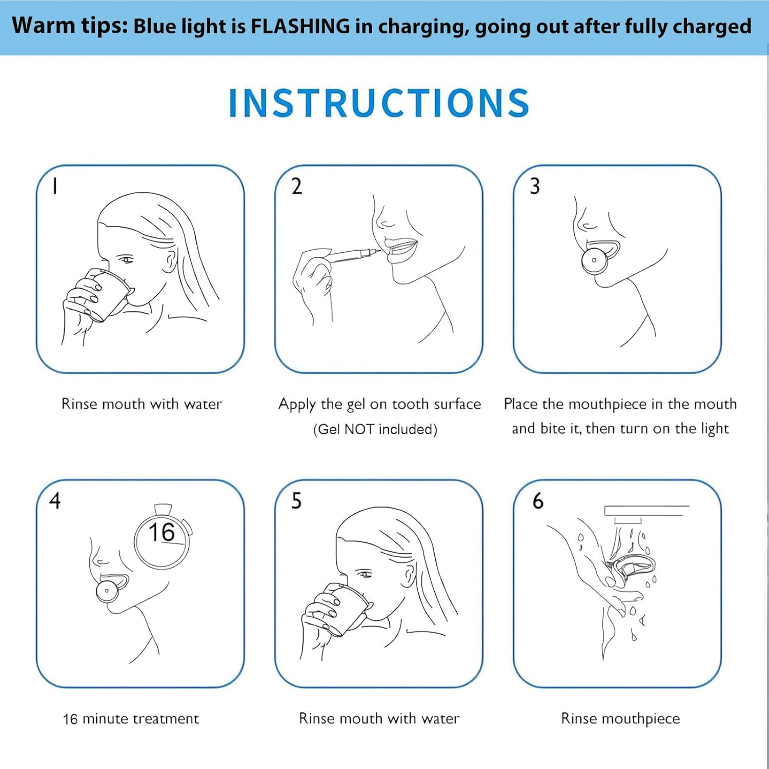 Wide Application: The led light contains 16 LED bulbs for total and complete teeth whitening.Compatible with any commercial teeth whitening gel or teeth whitening strips.