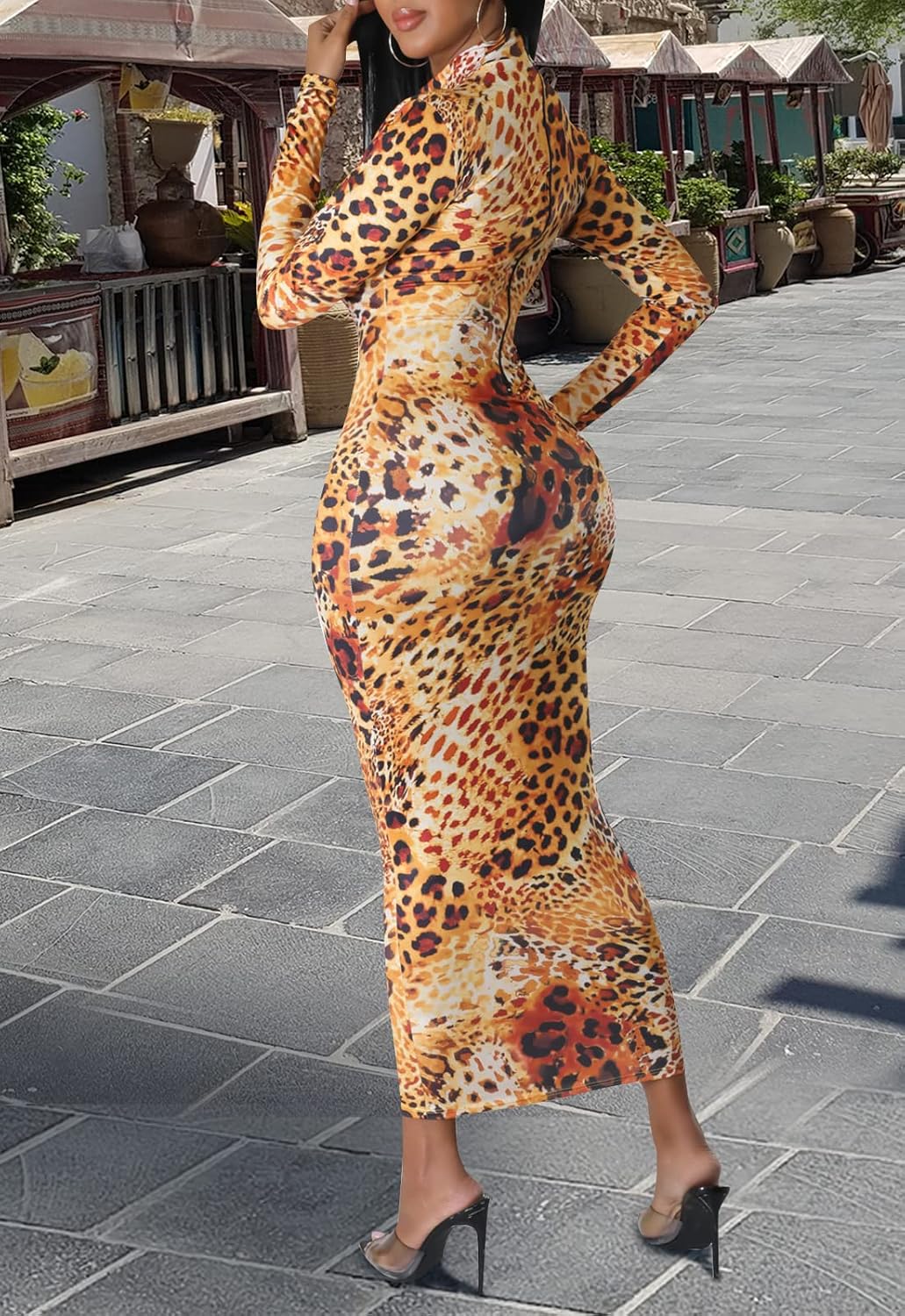 Features:Bodycon Dress,Long Sleeve,Deep V Neck,One Piece,Slim Fit,wear on both sides,Print,Sexy Elegant Club Party Dress.