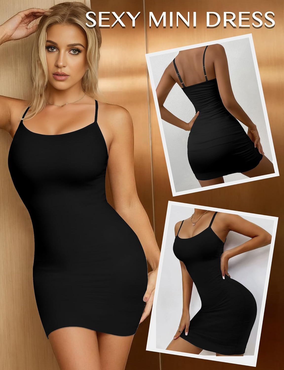 【High Quality Fabric】This mini dress is made of comfortable and breathable high-quality fabric, which is sexy and beautiful while giving you a comfortable wearing experience.At the same time, the dress’ light and thin fabric also has good elasticity, outlines the body curves, and is suitable for most women.【Unique Design】This summer dress has a classic slim fit and is composed of elements such as a round neck, open back, spaghetti straps, and the spaghetti straps can be adjusted in length, depending on your style. The style is simple, fashionable and sexy. The sexy dresses for women is an essential item in a woman’s wardrobe. When you put it, you will feel like you are standing in the center of the stage and releasing your charm.【Sexy Aesthetics】The classic design and versatile fit make this piece of cocktail dress magical and will never go out of style. When you wear it, you will find that your sexy figure is deeply embellished by it, and every curve of the body seems to be perfectly expressed. Sexy with a touch of elegance, you’ll want to keep this bodycon dresses forever.【Sexy and Elegant Style】This mini dress is combined with classic solid colors to create several classic colors such as black, white, red, and army green. Simple, fashionable and sexy, it will never go out of style no matter what era it is in. The classic and versatile shape allows you to show off your perfect body curves and highlight your beauty and sexiness.