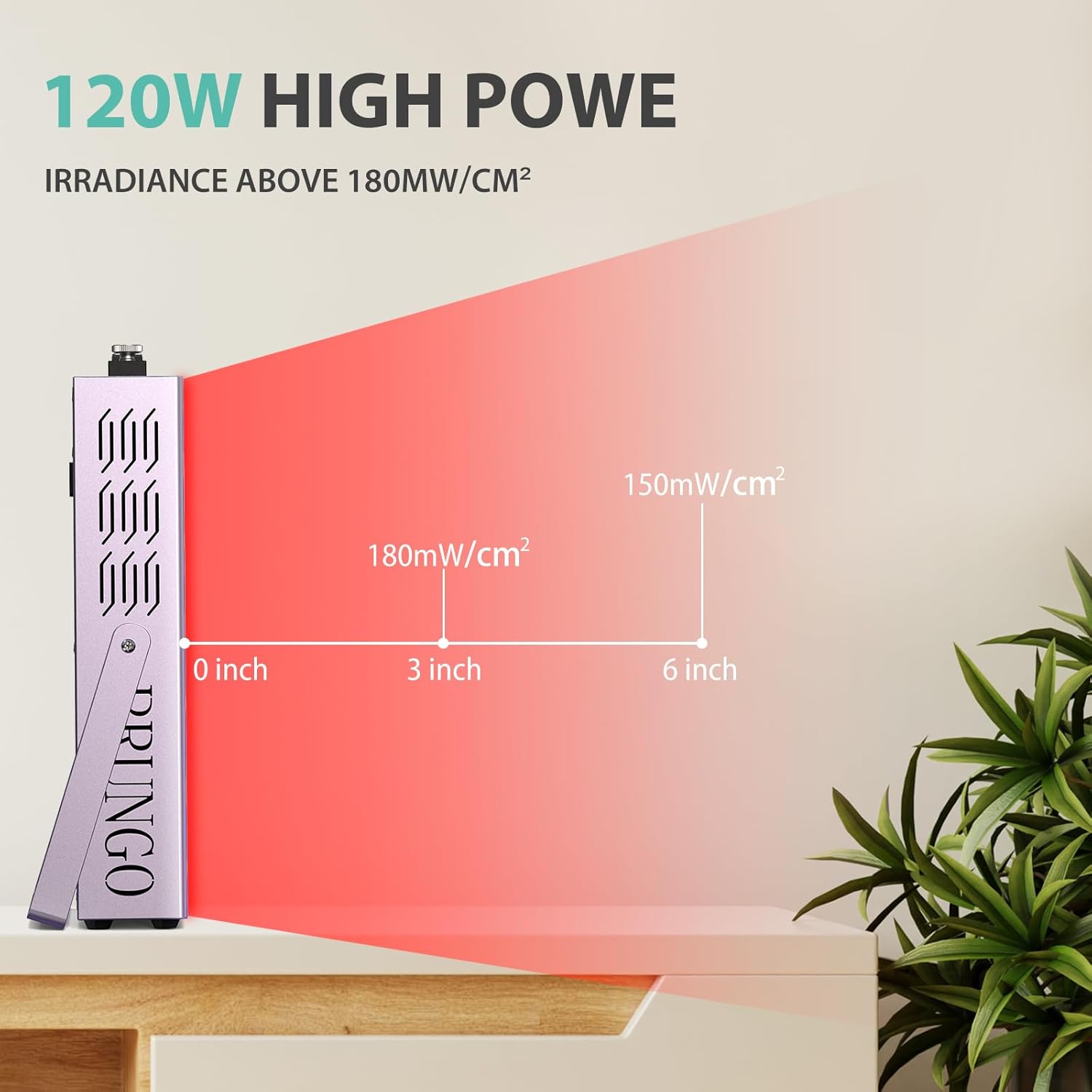 High Irradiance: our panel provides an irradiance of over 180mW/cm2 on the surface, and at 6 inches, it provides at least 150mW/cm2 of irradiance. You can ensure that your body will receive more powerful and efficient light when using the device.