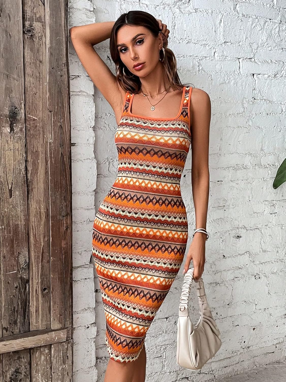 Verdusa Women’s Square Neck Sleeveless Striped Long Pencil Bodycon Tank Dress