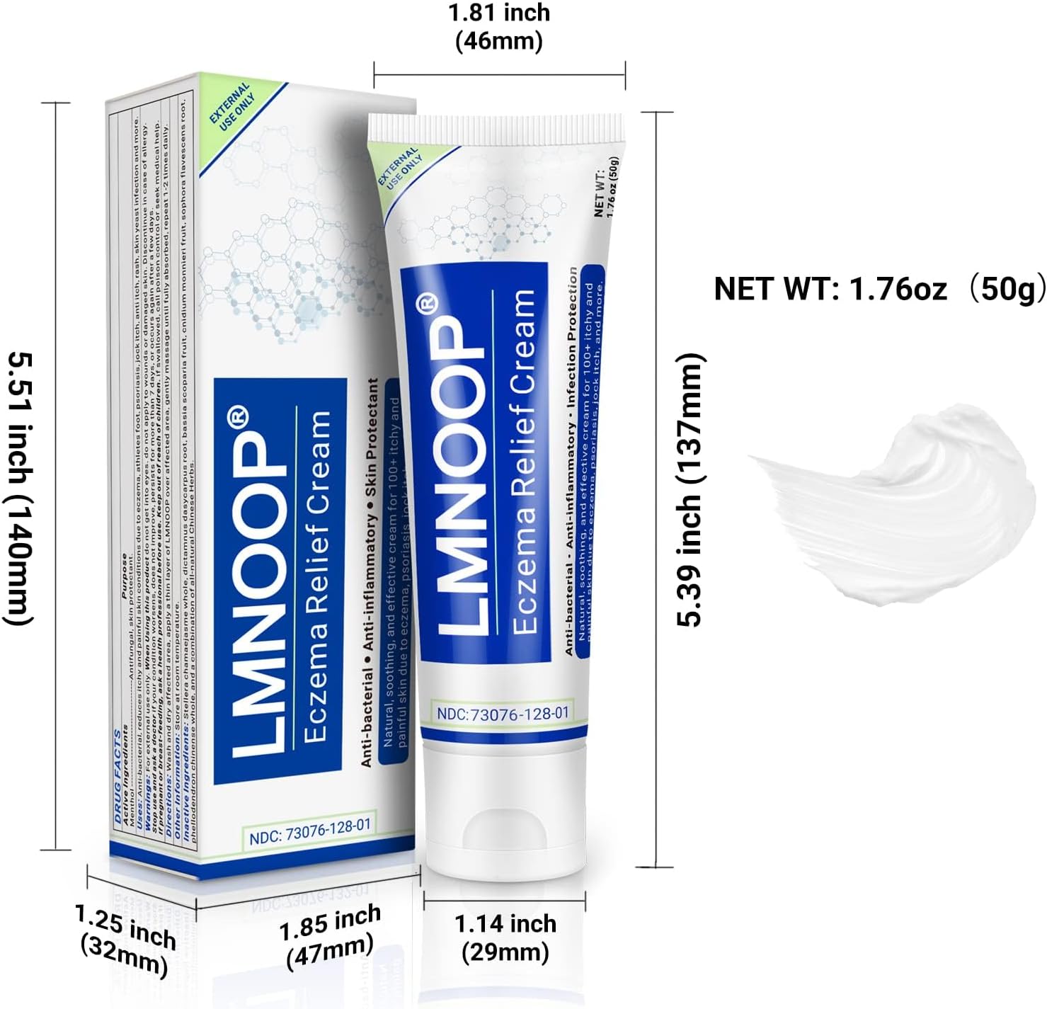 💕【Natural Ingredients】LMNOOP Eczema Therapy Cream Inactive ingredients includes essence extracted from dictamnus dasycarpus root, bassia scoparia fruit, cnidium monnieri fruit, sophora flavescens root and more. The active ingredients includes menthol (antifungal and skin protectant). The medicinal properties are mild, natural and easy to be absorbed by the skin without worrying about the risk of antibiotic resistance and hormone dependence.