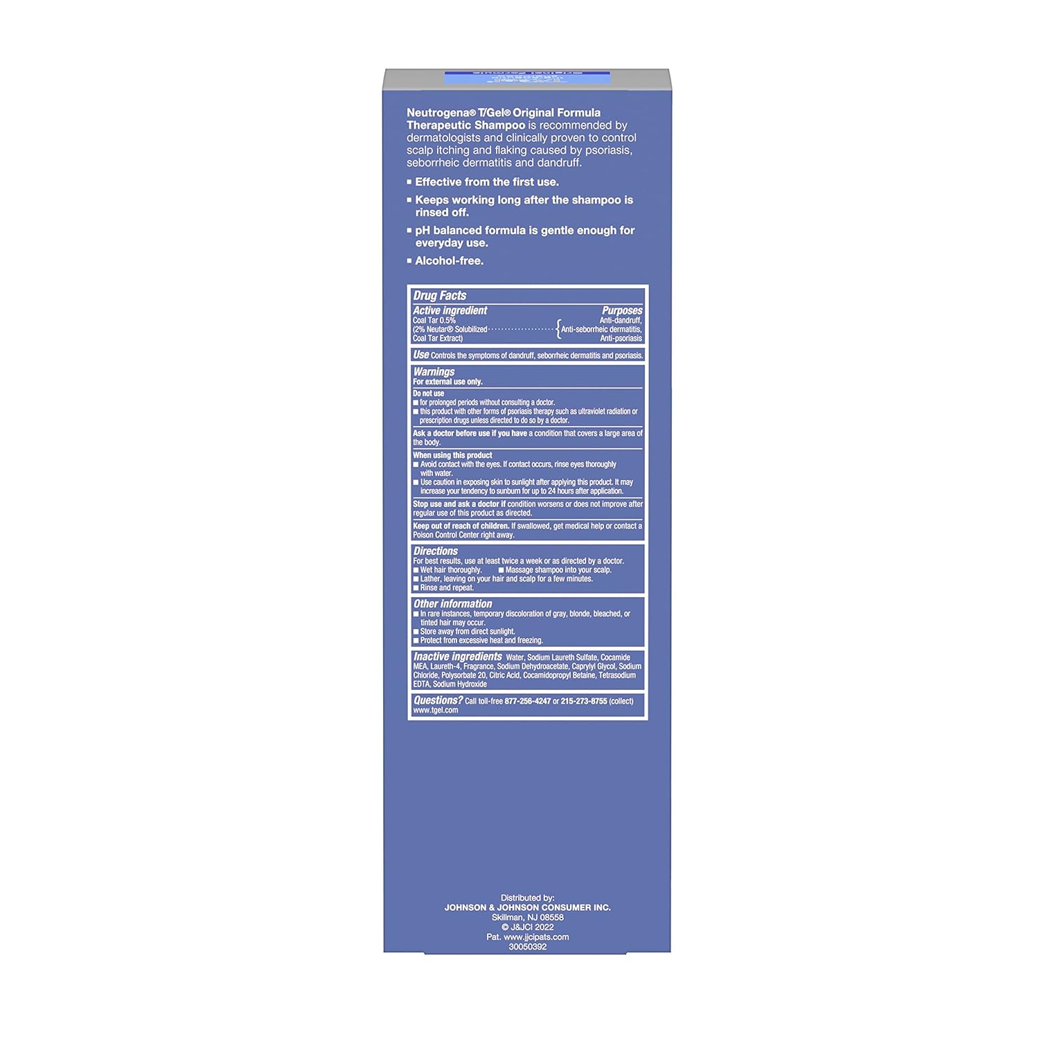 Get lasting relief from itching and flaking with Neutrogena T/Gel Therapeutic and Anti-Dandruff Shampoo. Safe for daily use, this original formula helps control itching and flaking caused by chronic scalp psoriasis, seborrheic dermatitis, and even common dandruff. Scientific tests prove that coal tar extract, the active ingredient in T/Gel Shampoo Original, continues to work for hours even after the shampoo is rinsed off. This dandruff treatment starts working after just one use and you can use this therapeutic shampoo just once a week to reduce dandruff for an entire week.* From a dermatologist recommended brand, this shampoo helps maintain a healthy scalp and leaves hair clean and manageable. *Use as directed, for best results use twice a week.