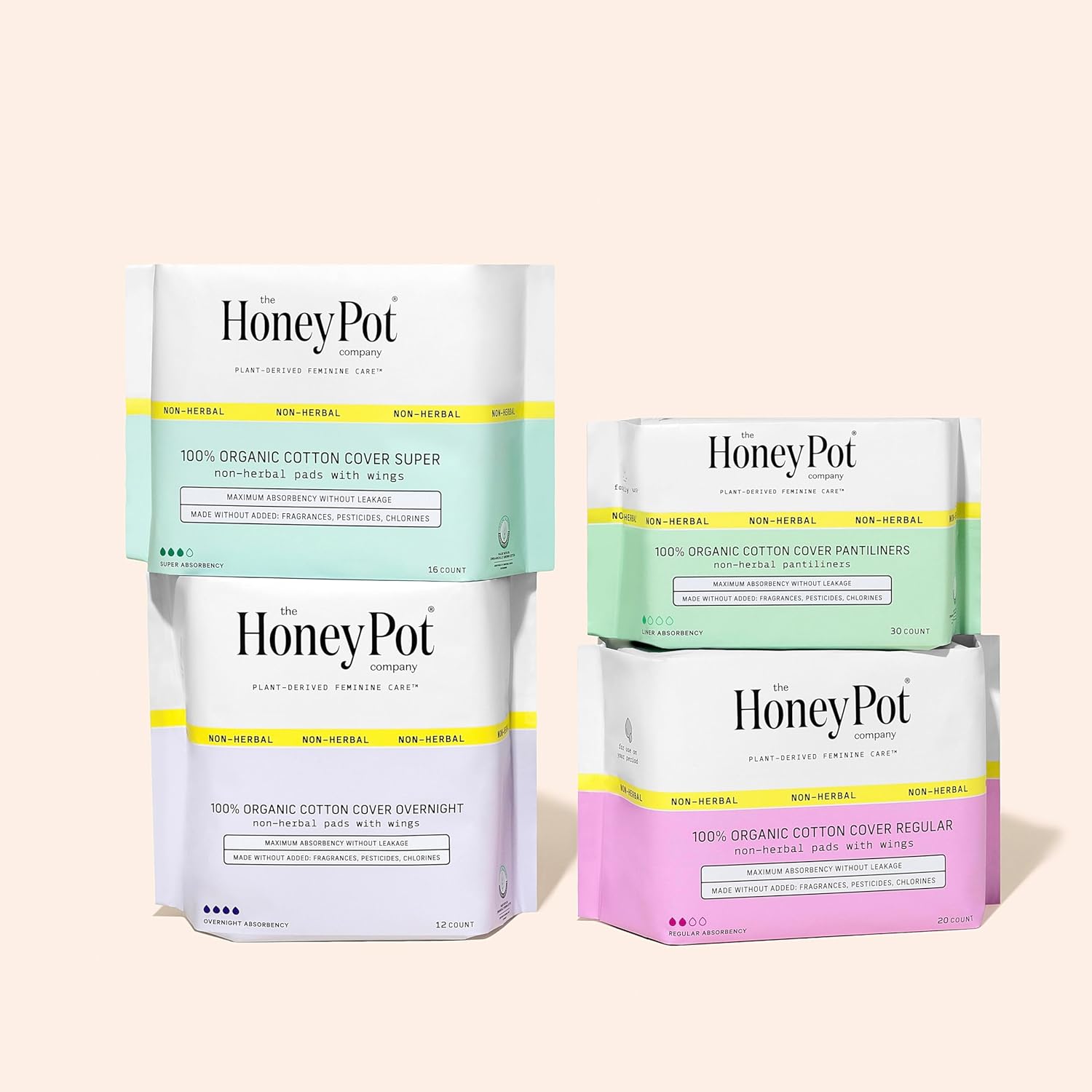 Say hello to the future of feminine care with Honey Pot: These absorbent OCS certified organic cotton cover sanitary pantiliners are designed with our absorbent technology; They are clinically tested, hypoallergenic and dermatologist approved