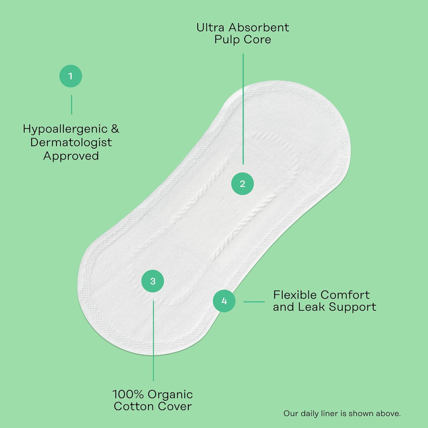 Have a more peaceful period: Stay clean, fresh, and protected, during your period or when you need a little extra protection with our plant derived menstrual products; With maximum absorbency and total freedom, our liners are for use throughout the day without the dreaded fear of leaks