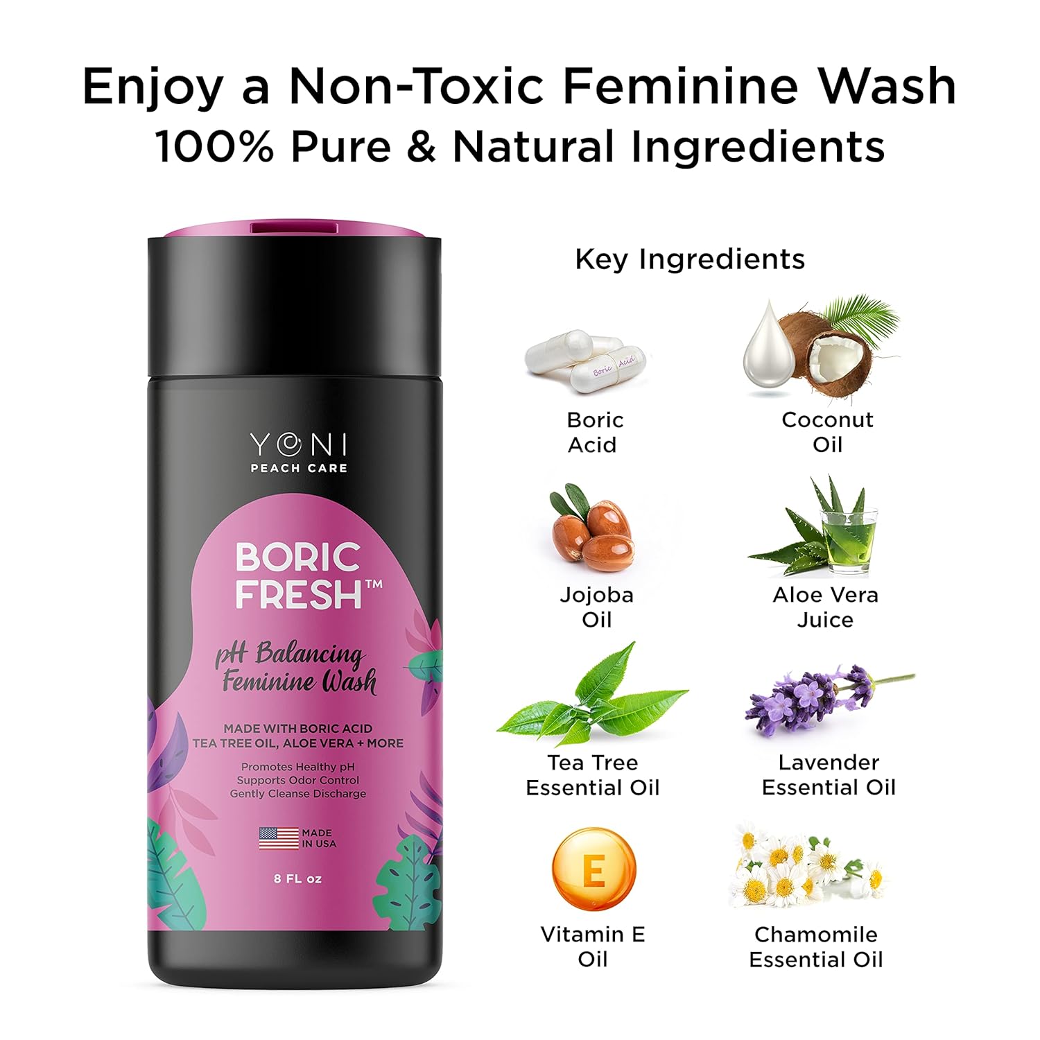 💖 EXQUISITE FEMININE CARE WASH: Boric Fresh pH Balancing Feminine Wash offers a superb option for your feminine hygiene requirements. This organic cleanser boasts of its gentleness suitable for daily use. It aids in cleansing the vulva from undesired smells, rendering a sensation of freshness, rejuvenation, and invigorating confidence.