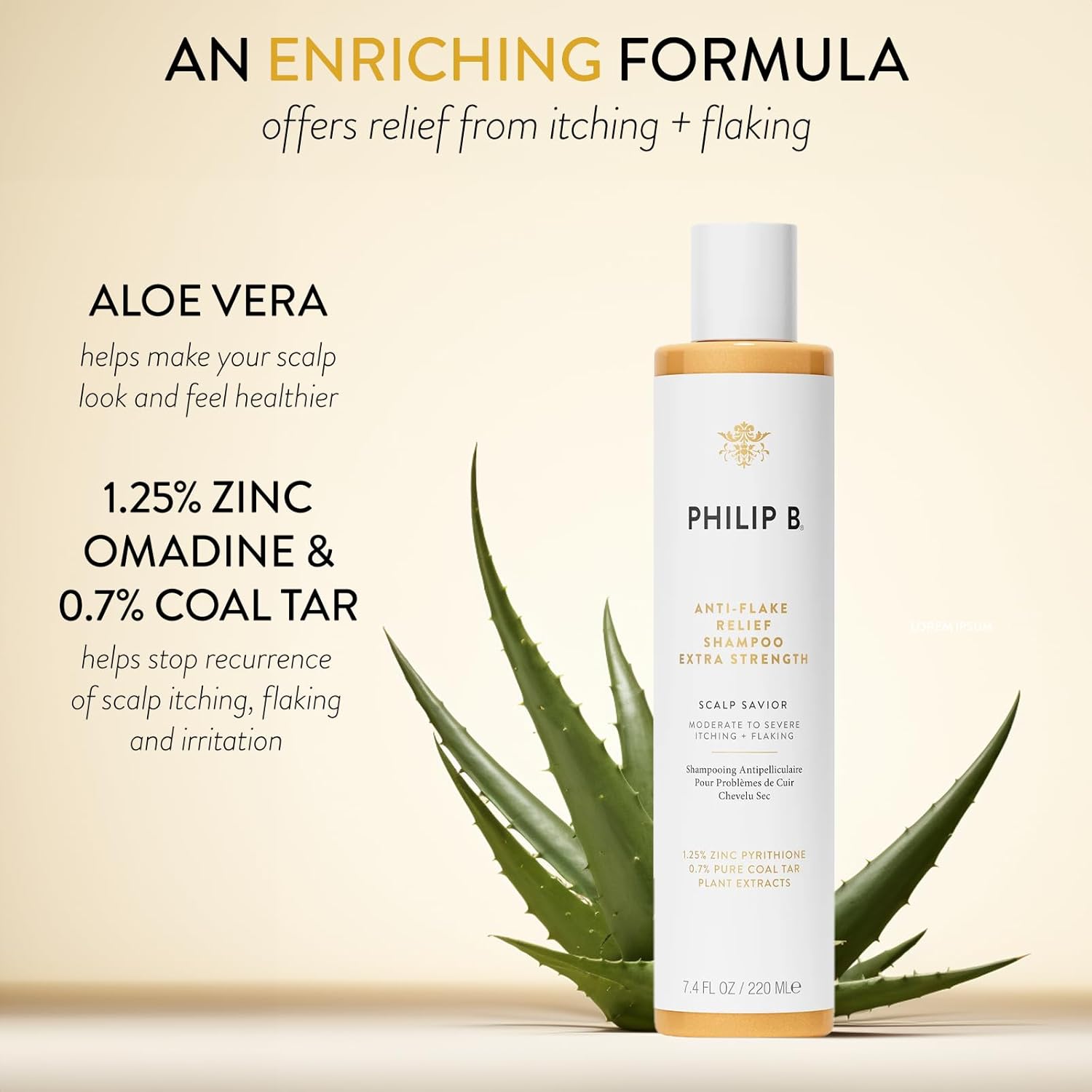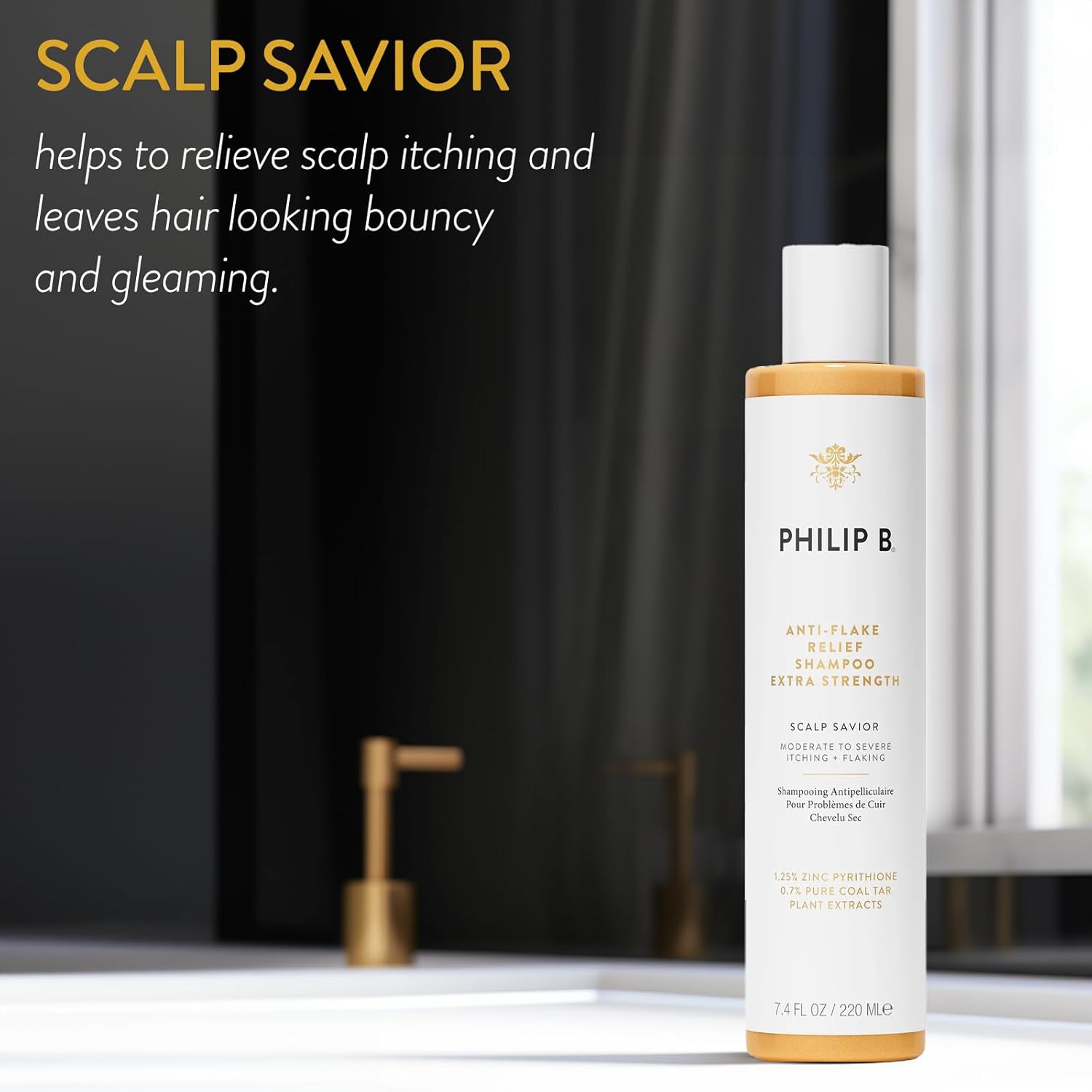 SCALP SAVIOR. Made for those with severe scalp issues, Philip B. Anti-Flake Relief Shampoo (Extra Strength) helps to relieve itching and flaking, providing instant soothing relief for lasting comfort. We’ve included hair loving extracts like Chamomile to give your scalp the love it needs and deserves!