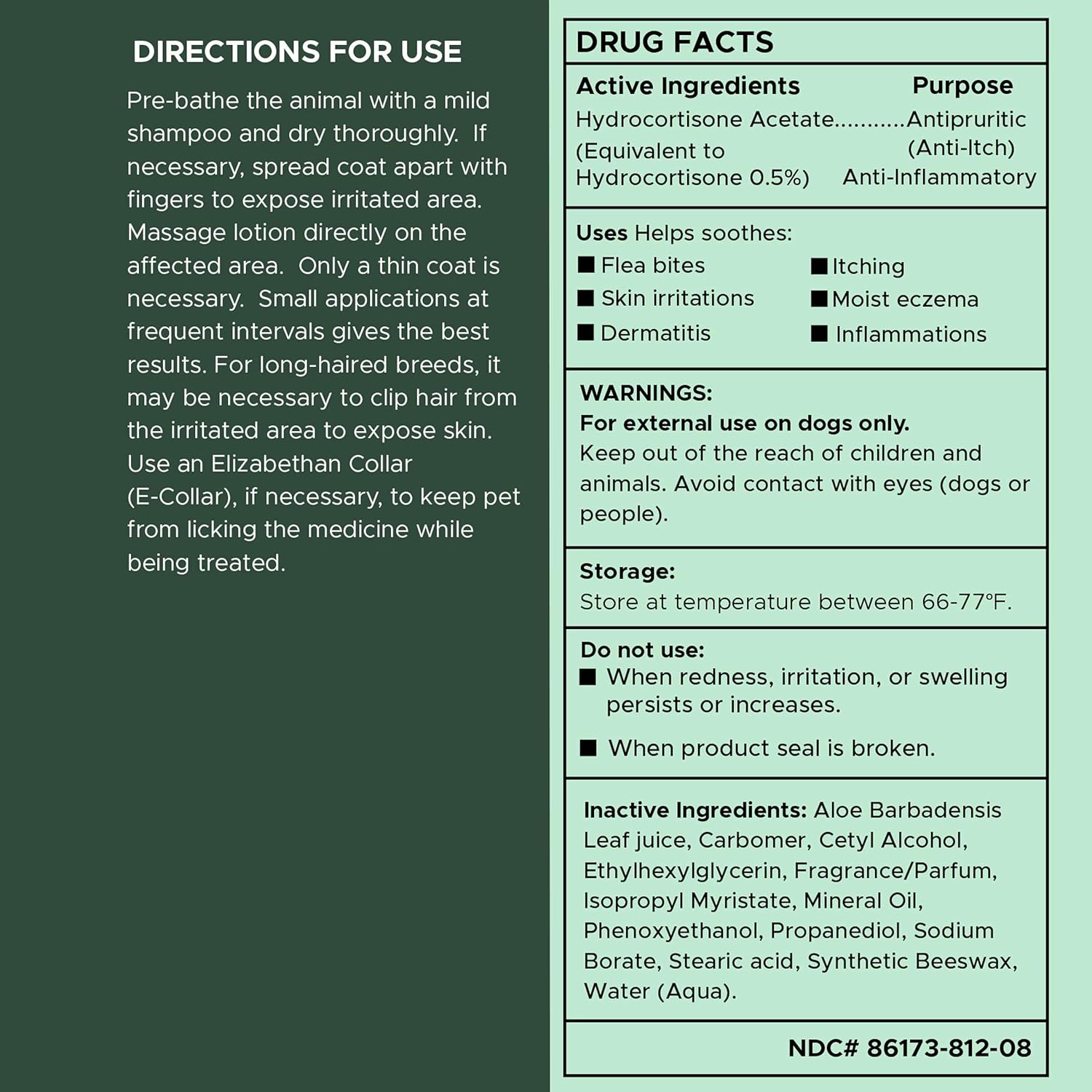 This anti-itch lotion for dogs comes with 8 fl. oz. (236 ml) of hydrocortisone. Made in the USA.
