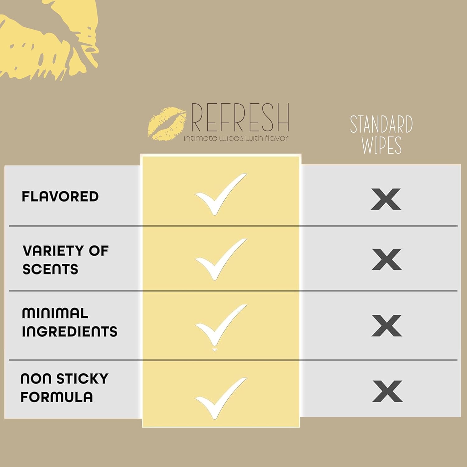 ABSOLUTELY DELICIOUS: Refresh flavored feminine wipes help with both personal hygiene and have a natural flavor that your partner will love!