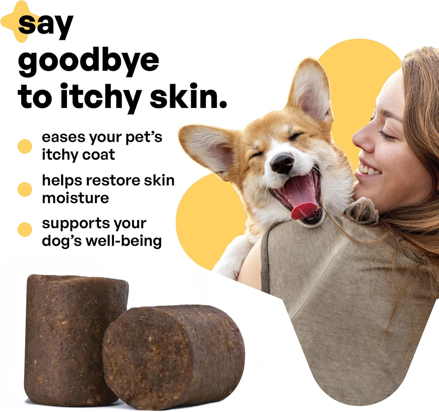 Suits All Breeds & Sizes – Whether you have a puppy or, a small or a large dog, our dog skin and coat supplement is perfect for your pet dealing with discomfort caused by allergies, dry skin, or other skin irritations. After consulting with your veterinarian, you may give 1-3 dog treats based on your pup’s weight.