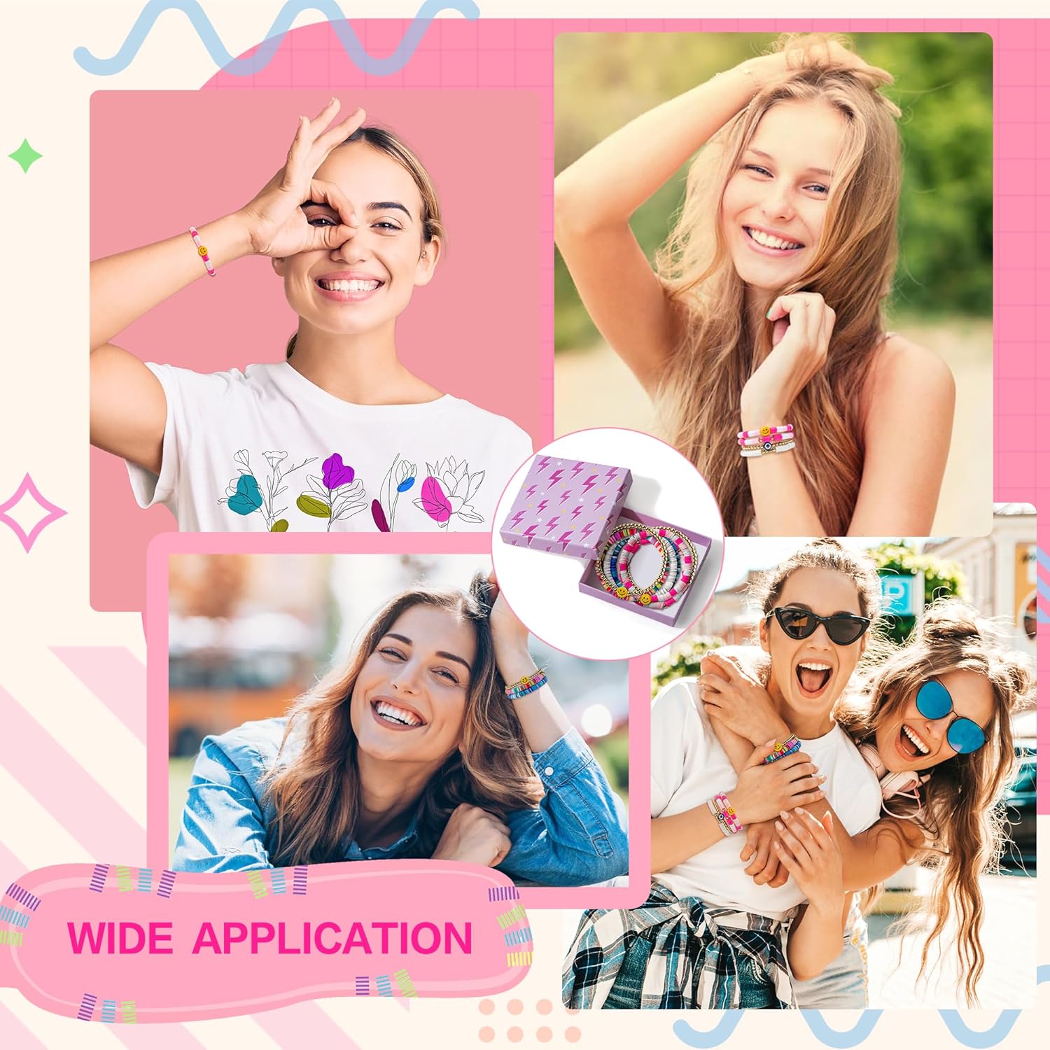 You will get 7Pcs colorful stretch bracelets in different styles.