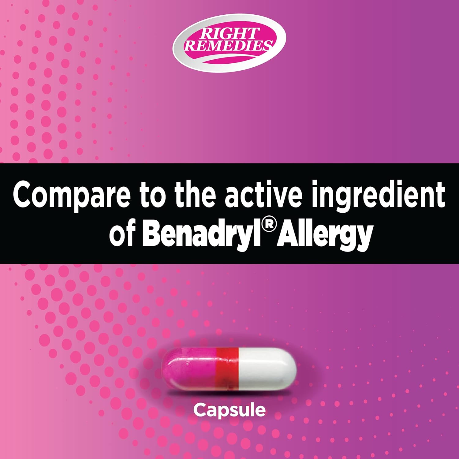 ✅ MULTI-SYMPTOM RELIEF: Right Remedies allergy relief capsules contain diphenhydramine HCl 25 mg, an antihistamine that helps relieve symptoms related to hay fever, upper respiratory allergy, or cold symptoms such as runny nose, sneezing, itchy nose and watery eyes.
