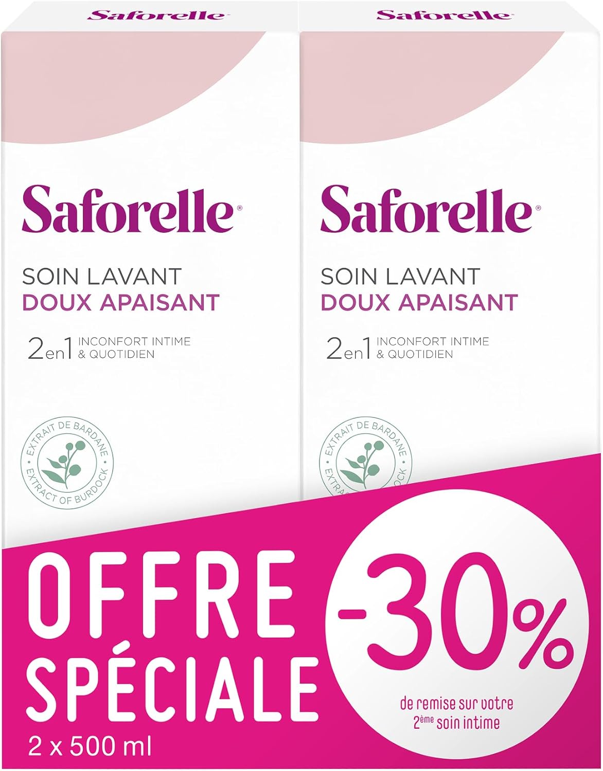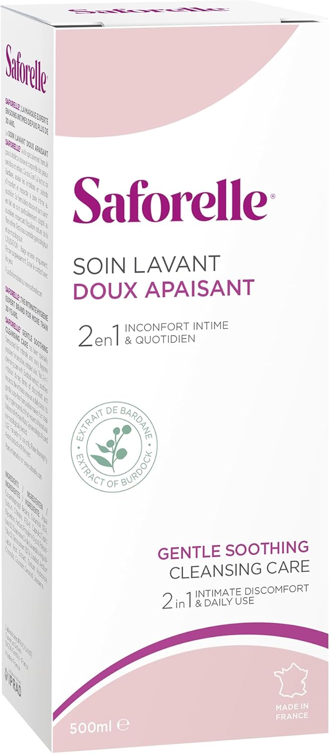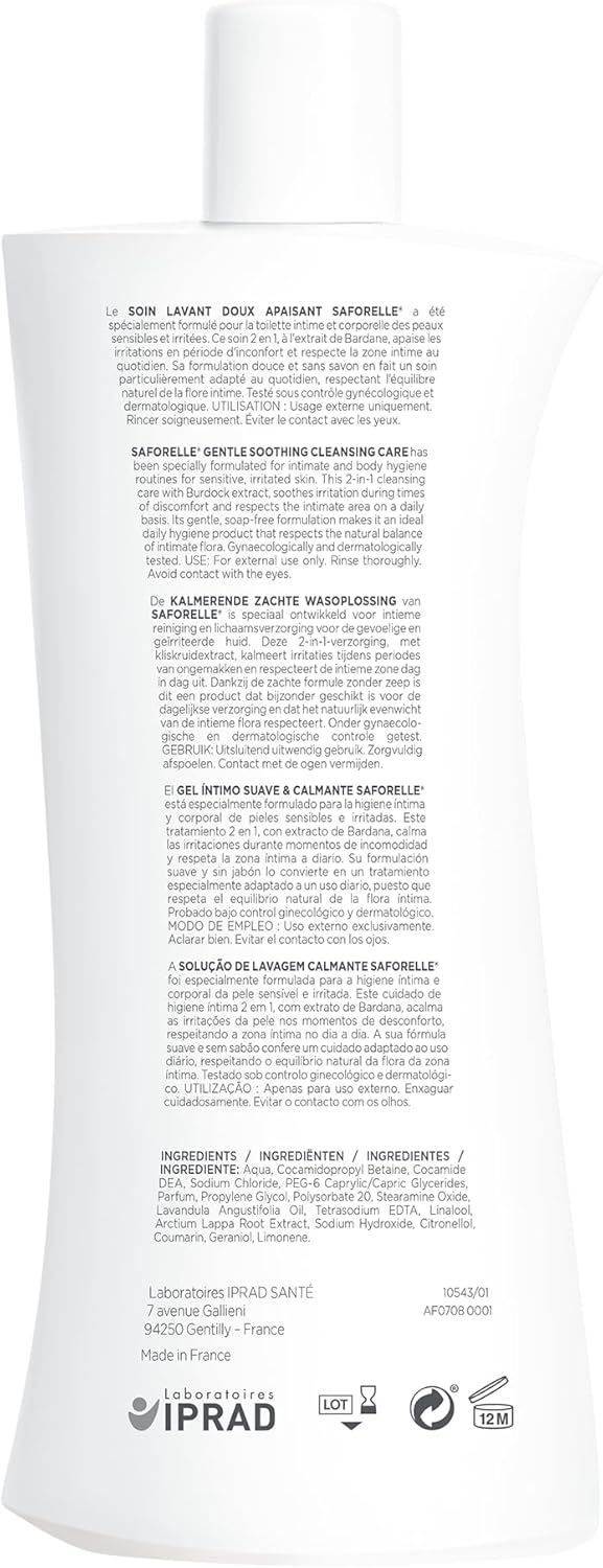 Saforelle carefully cleans and soothes irritations and itchings. Its soft alkaline pH and the extracts of Burdock with the alleviating and lenitive properties make this care particularly adapted to intimate and body hygiene, everyday.Preservative-free, dye-free.