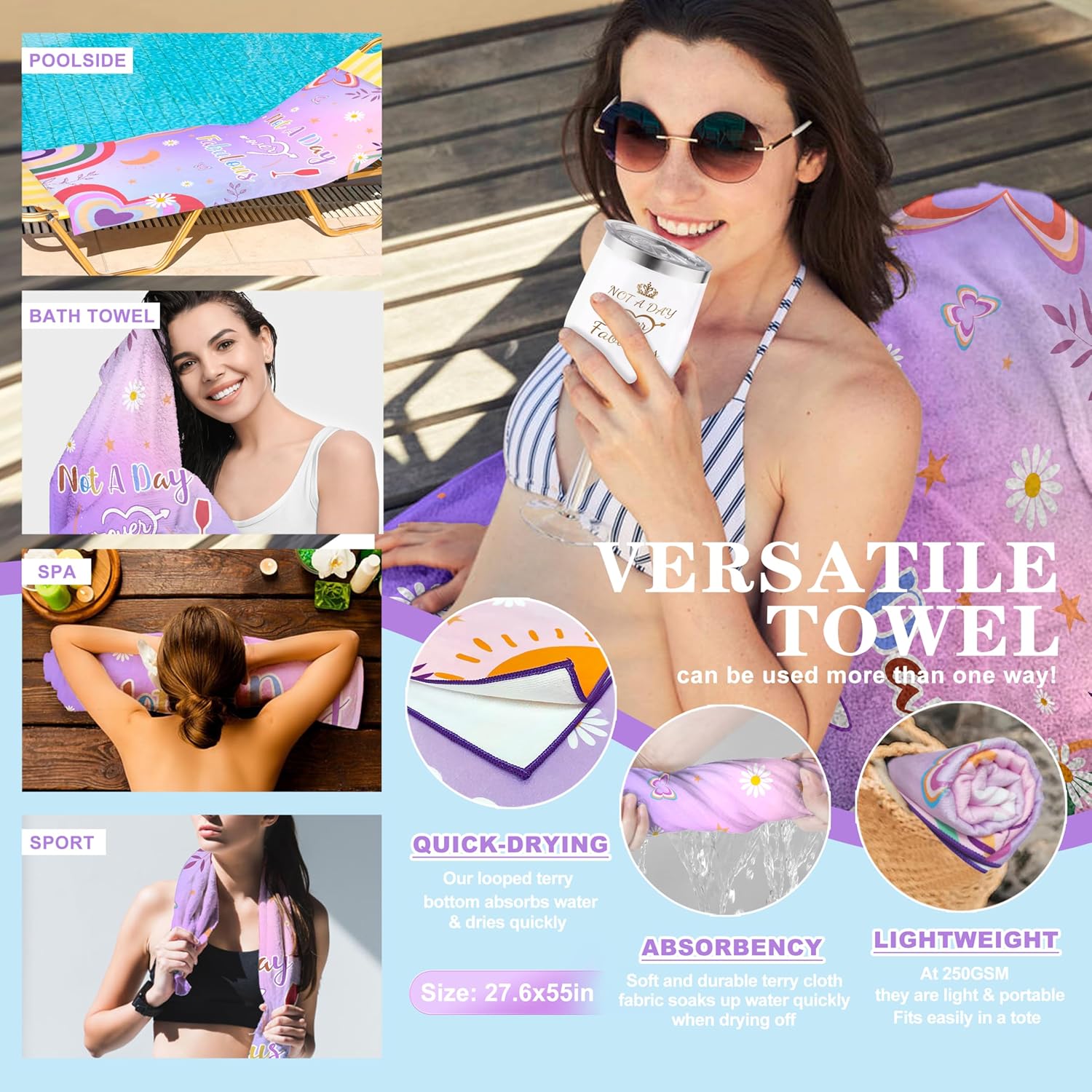 【Lavender Relaxing Spa Gifts Basket】The Spa Gifts Box Purple Gifts contains 16 items — Beach towel, tumbler, soap, bath bomb, scented candle, bath loofah shower sponge, purple beaded bracelets, bath salt, eye mask, headband, birthday socks, dried flower gift card , heart shape key ring, makeup bag, greeting card and elegant gift box. It is perfect as a spa gift, self care gift, get well gift, thank you gift, care package gift, thinking of you gift etc, to make her feel valued and cherished.