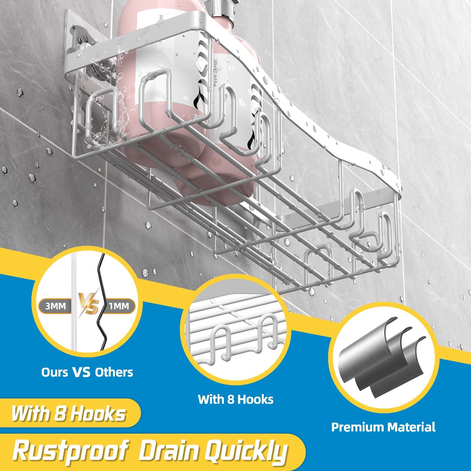 【Rustproof Durable Shower Shelves】:Youvip shower caddies made of high-quality stainless steel, waterproof, rust-proof, scratch-resistant and can be used for a long time.. The The hollow at the bottom of adhesives shower caddy can effectively drain water, keeping your shower supplies clean and dry.