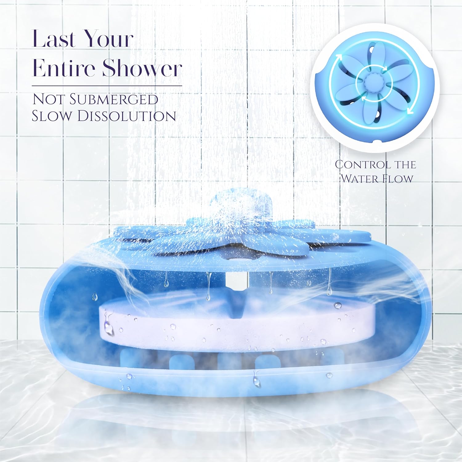 𝐓𝐚𝐜𝐭𝐟𝐮𝐥𝐥𝐲 𝐂𝐨𝐧𝐭𝐫𝐨𝐥 𝐃𝐢𝐬𝐬𝐨𝐥𝐮𝐭𝐢𝐨𝐧 𝐑𝐚𝐭𝐞: Bigger drain holes make the aroma more intense. Featuring a top knob switch for controlling water flow, bump and drain hole design to prevent submergence. By controlling the amount of water, the dissolution rate of the bath tablet is slowed down
