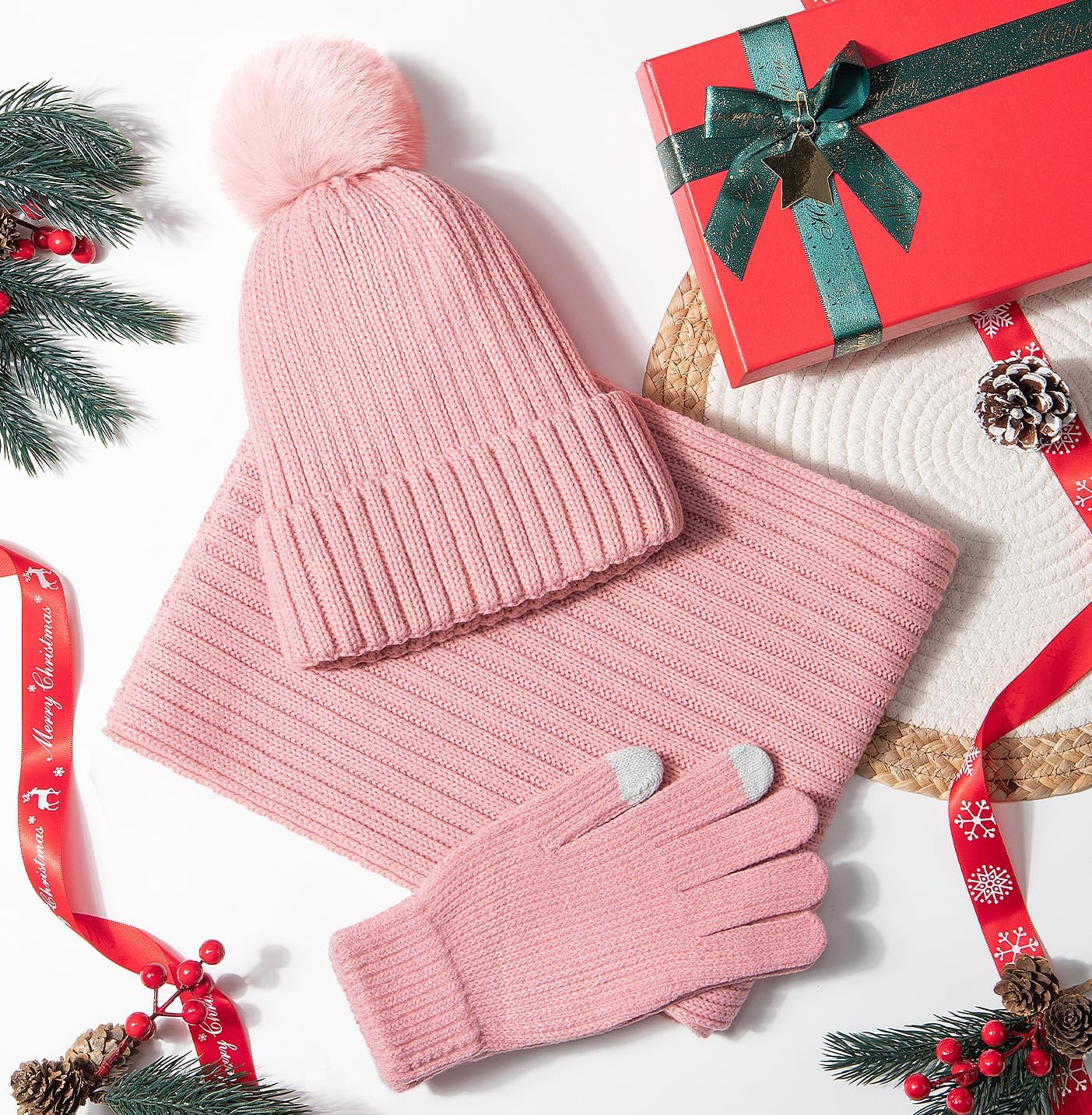 3-IN-1 WINTER HAT SCARF GLOVE SET: The women’s hat gloves scarf set is the perfect blend of style and warmth, making it a unique Christmas Best Friend birthday Gifts for Women Mom Sister Wife Her Female. With its vibrant colors, this set adds a stylish touch to any winter wardrobe, enhancing both indoor relaxation & outdoor adventures. Perfect for activities like skiing, snowboarding, running, sledding, camping, and winter travel, surely a great essential for staying cozy & chic on chilly days