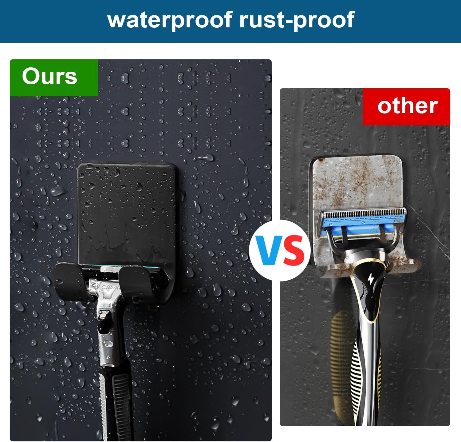 Easy Installation Bathroom Razor Holder: No screws, No holes, No tools! The hooks can stick to different surface such as wood, marble, ceramic tile, glass or metal surface, just peel off the protect film and stick on the right position. They are waterproof and rust-proof, you can use them in the wet condition, It is a must have for bathroom and kitchen.