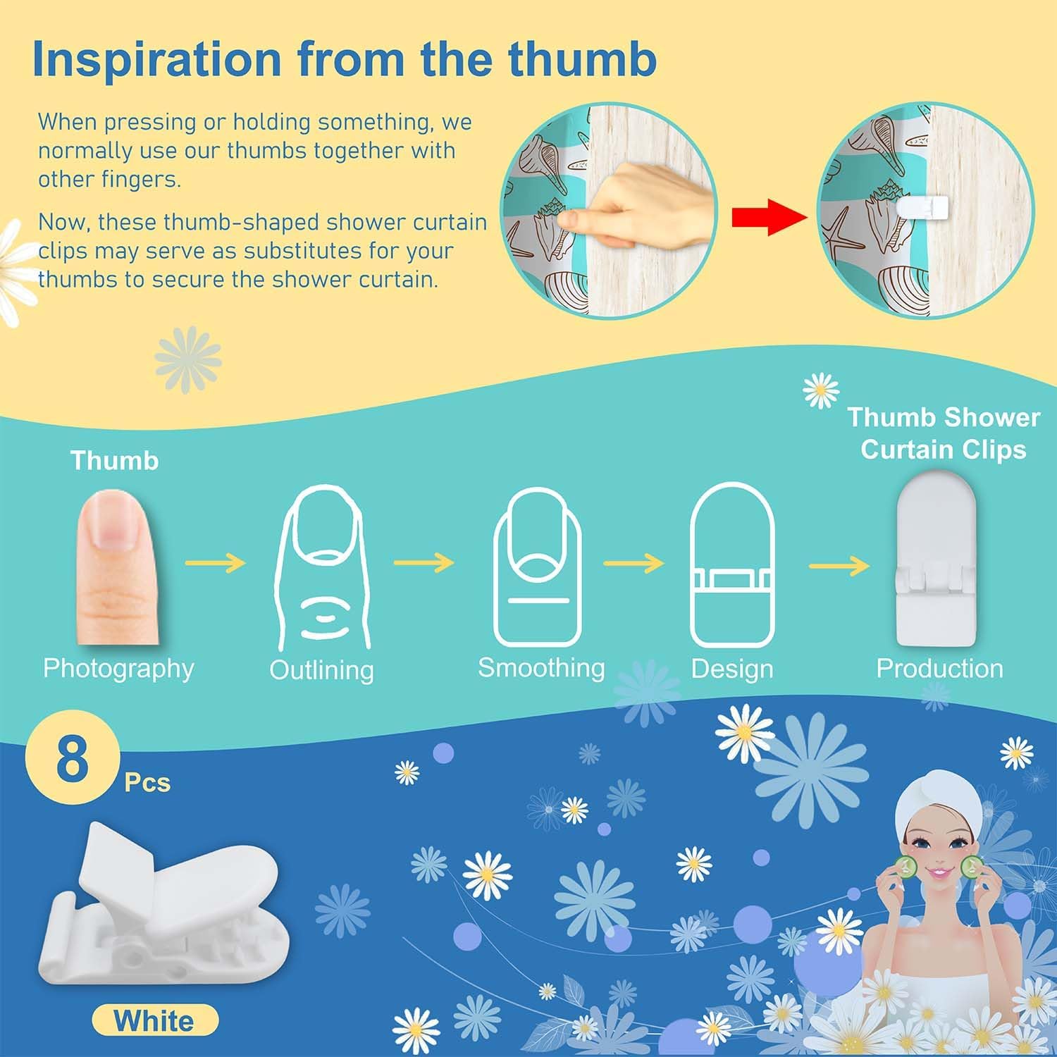 Creative Design: The Thumb-Shaped shower curtain clips can serve as substitutes for your thumbs to secure the shower curtain.