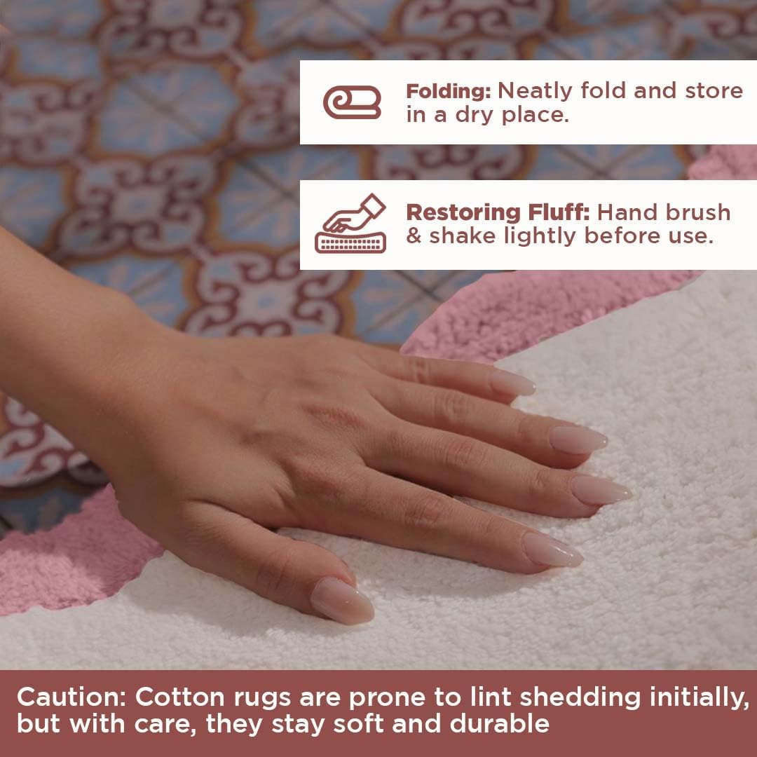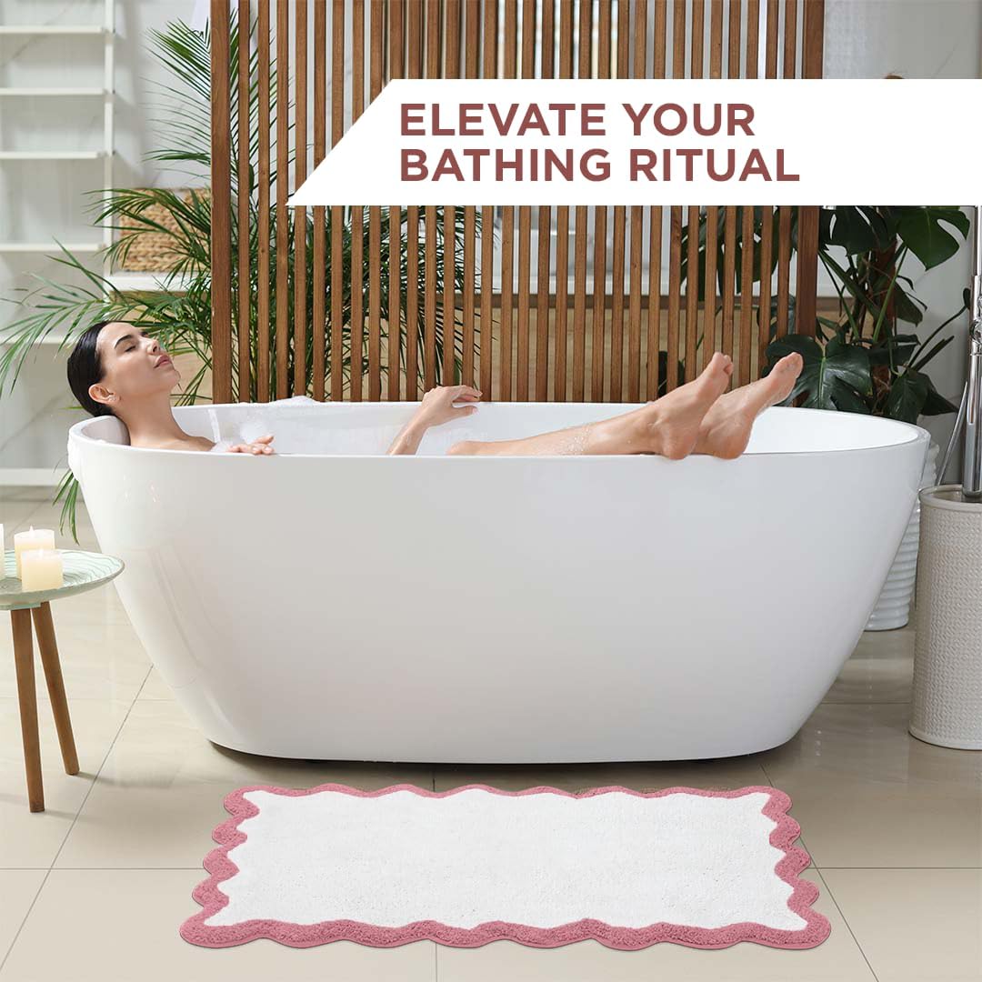 [ RUBBER BACKING ] – Designed with a nonslip rubber backing, this cotton bath mat for tub non slip stays securely in place, ensuring durability. NOTE: Place the white bath mat on a clean, dry, and flat surface only. Water under the rug can cause it to slip. Always keep the bottom of the non slip bathtub mat dry.