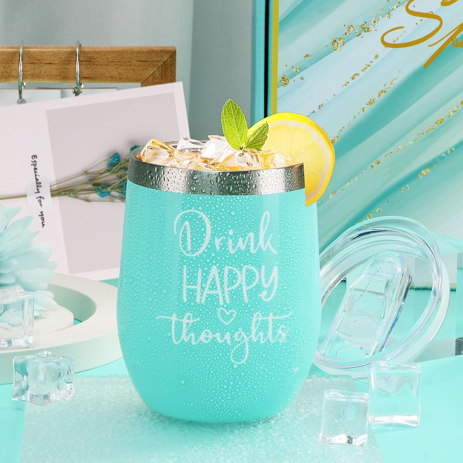 1*12 OZ Insulated Stainless Steel Tumbler with a “Drink HAPPY Thoughts” Quote