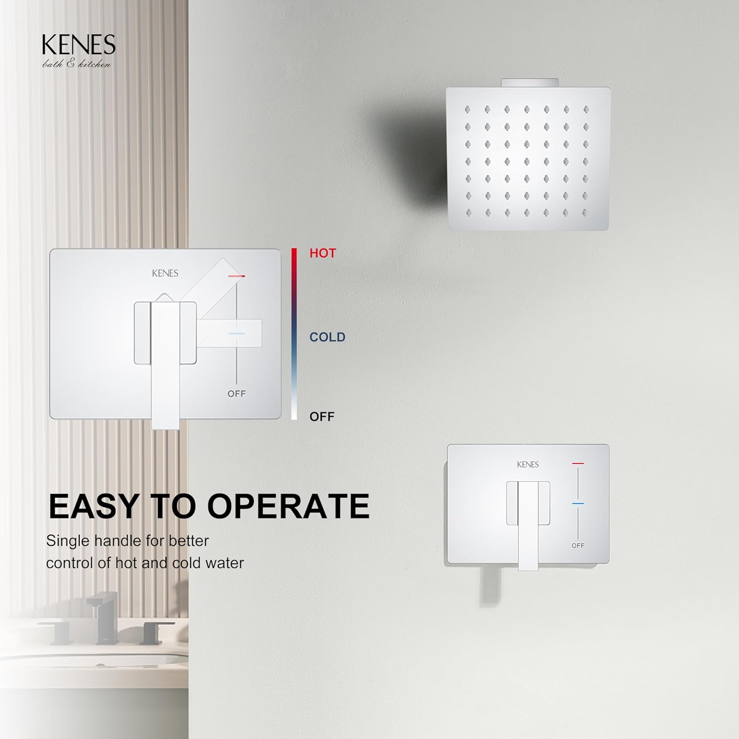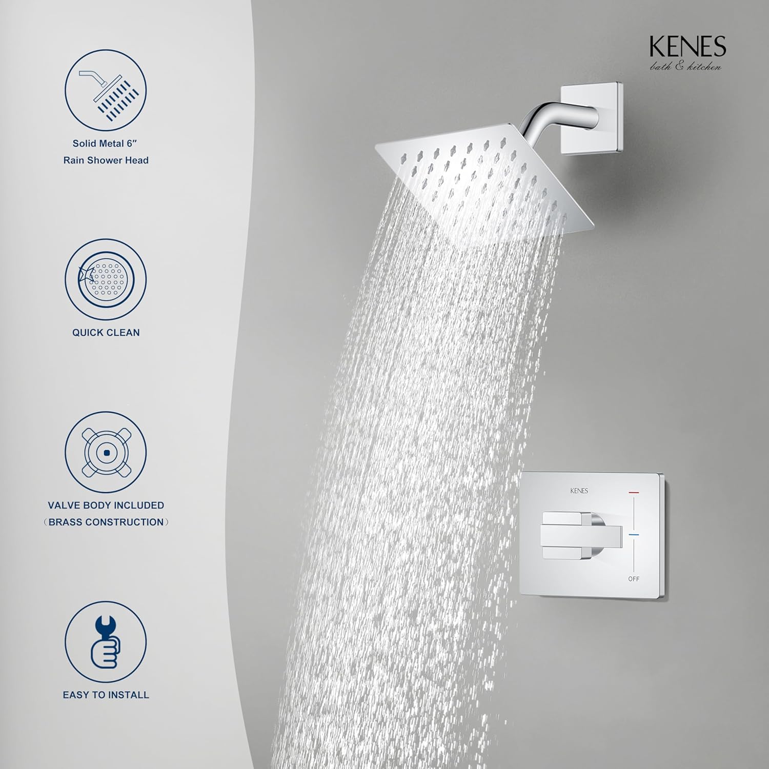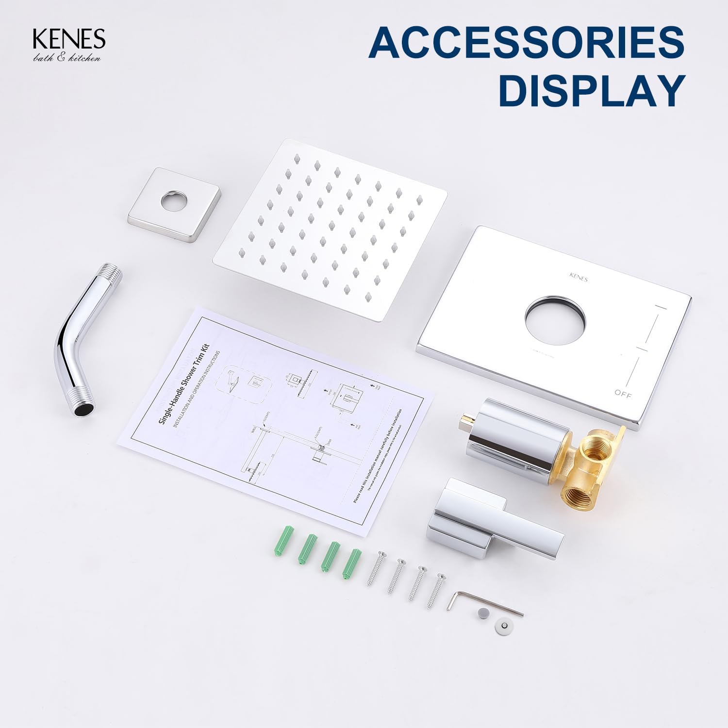 【HIGH QUALITY MATERIAL】: KENES Wall Mounted Shower Faucets are available in 304 Stainless Steel and Brass, we are sure you will love your KENES shower set for its unique premium quality.